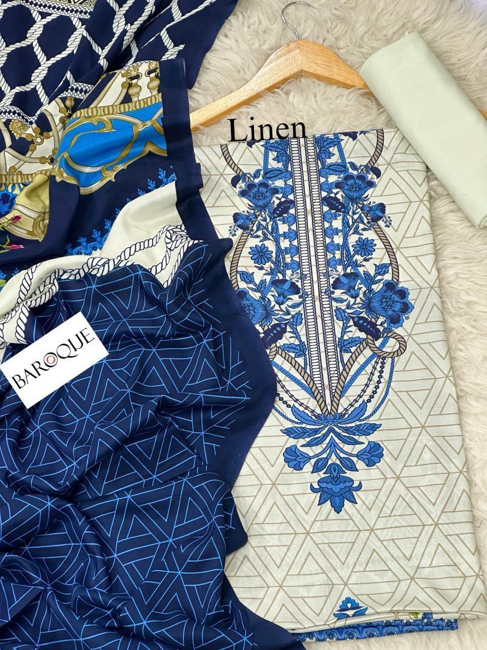 Gul Ahmed Chunri/ Baroque 72/72 LINEN Digital Print 3pc 2025 - A#18