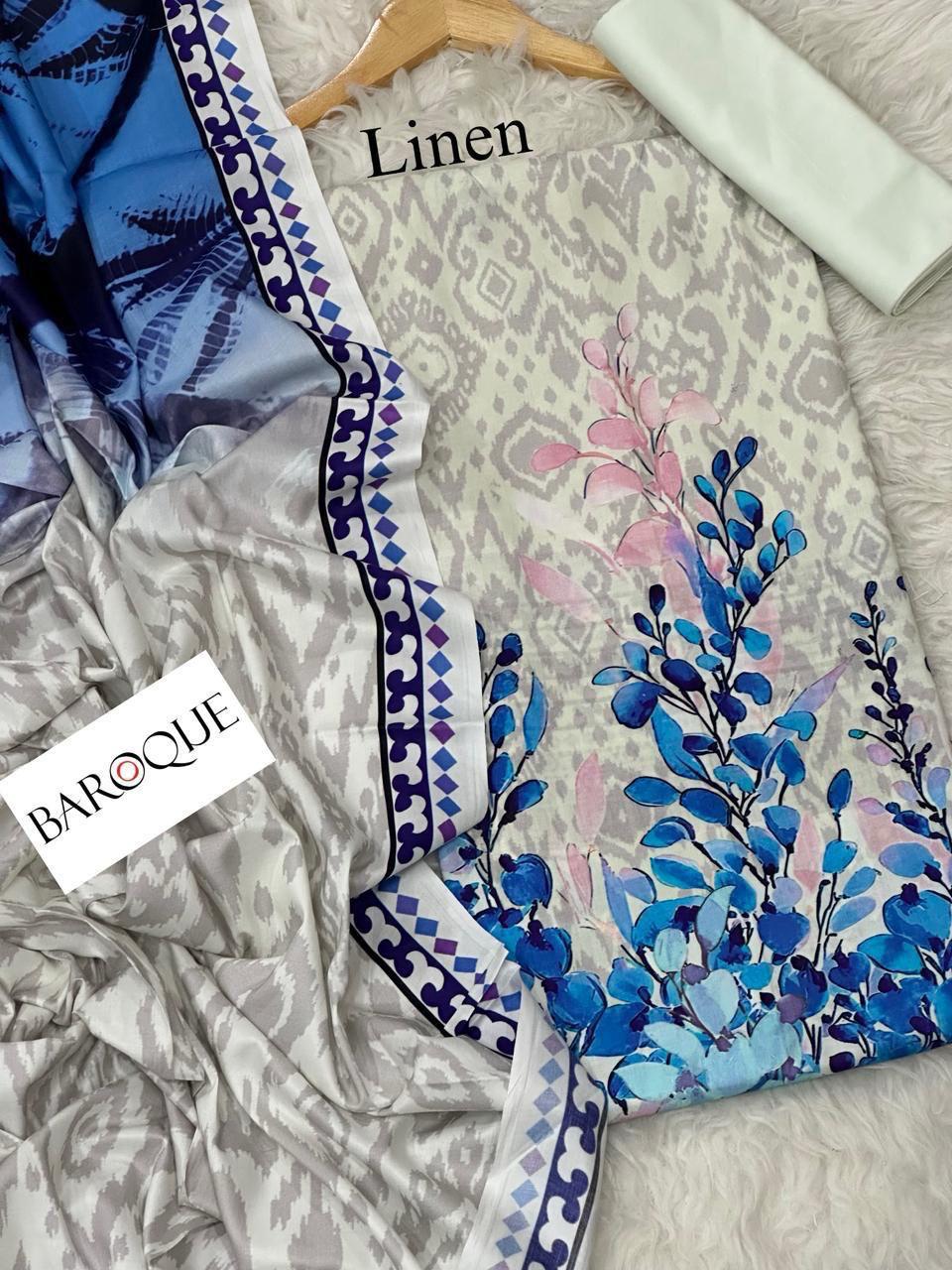 Gul Ahmed Chunri/ Baroque 72/72 LINEN Digital Print 3pc 2025 - A#19