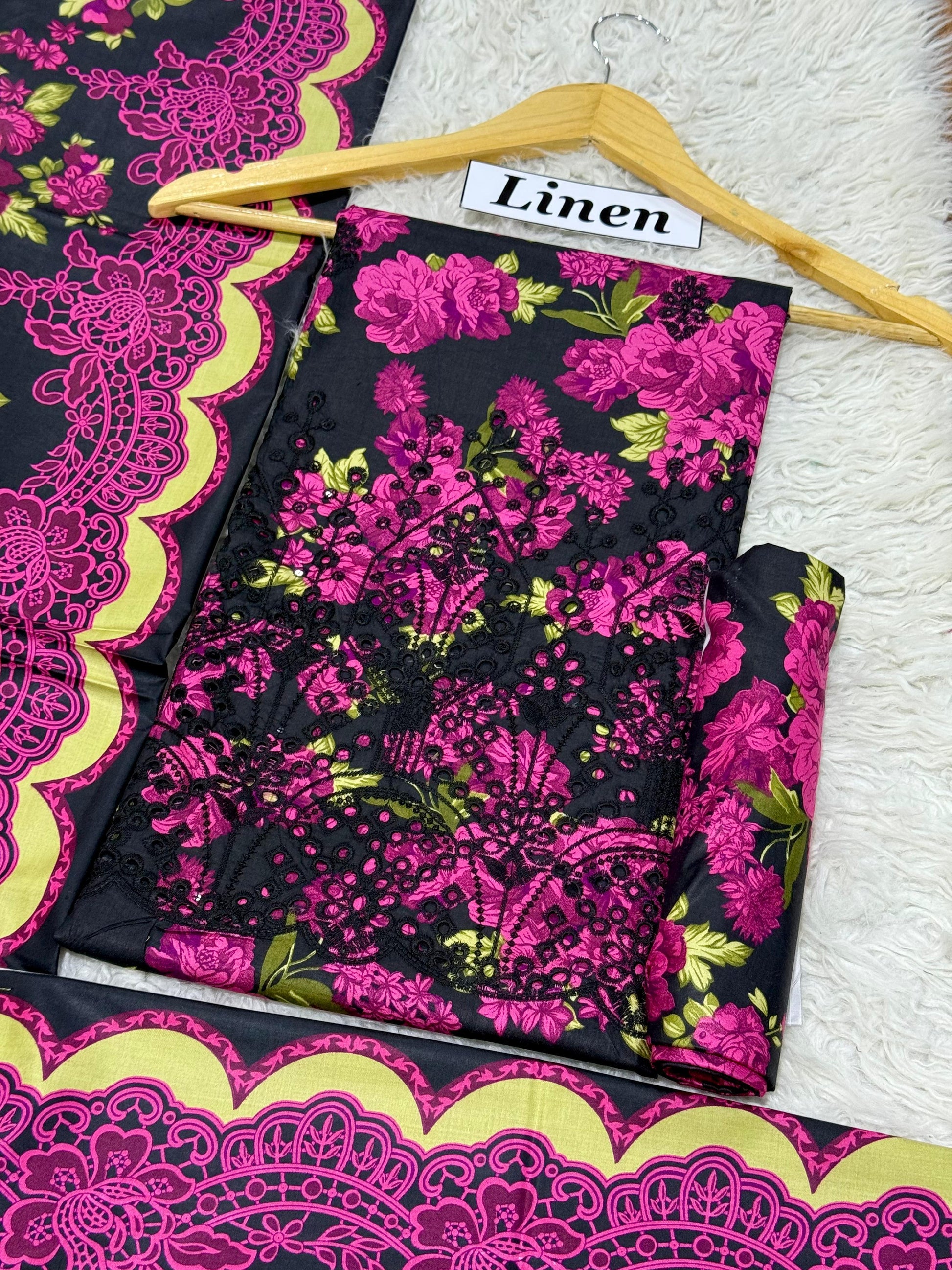 LINEN Printed Shirt with CHIKANKARI/LASERKARI Embroidered Daman