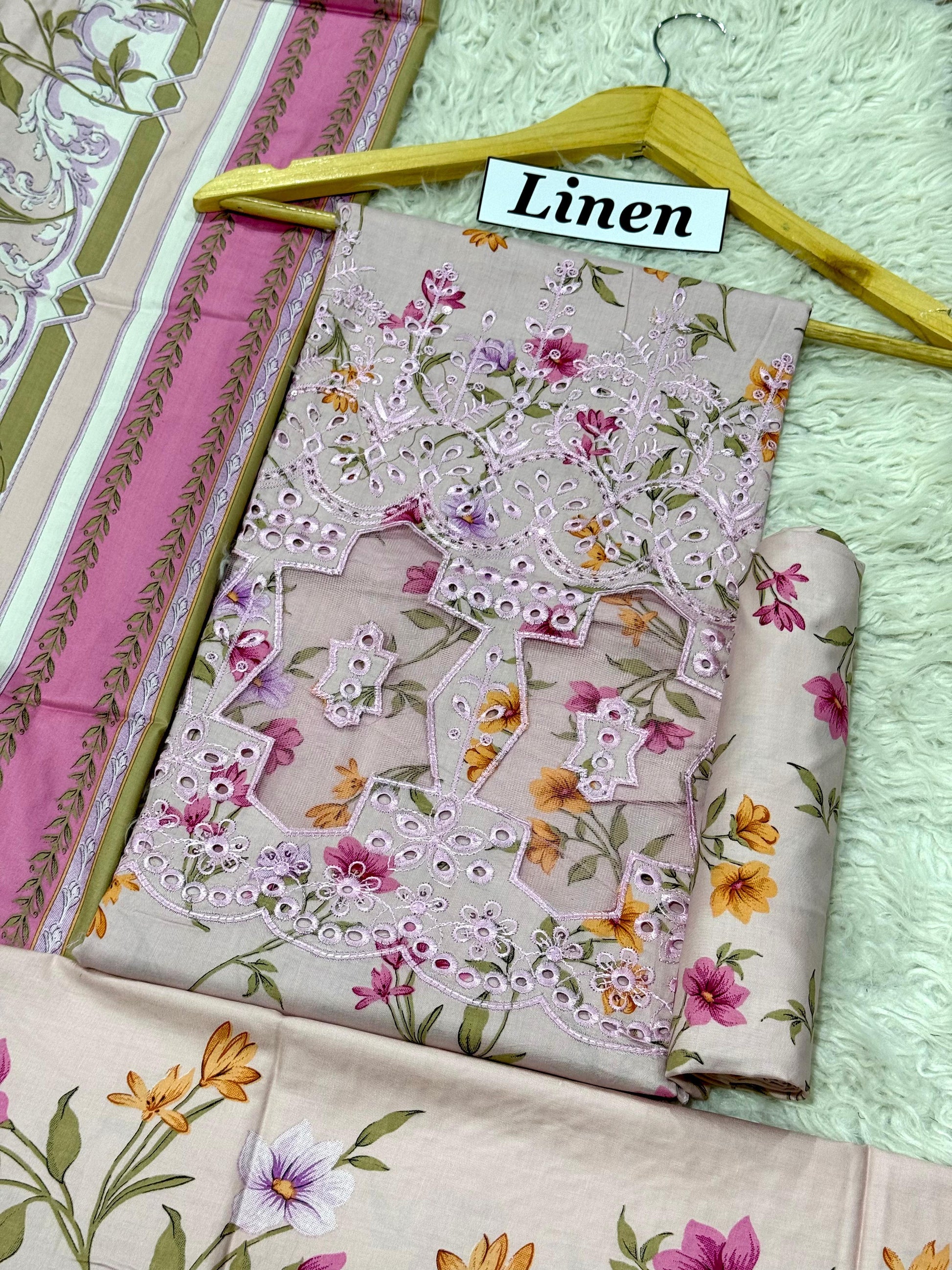 LINEN Printed Shirt with CHIKANKARI/LASERKARI Embroidered Daman