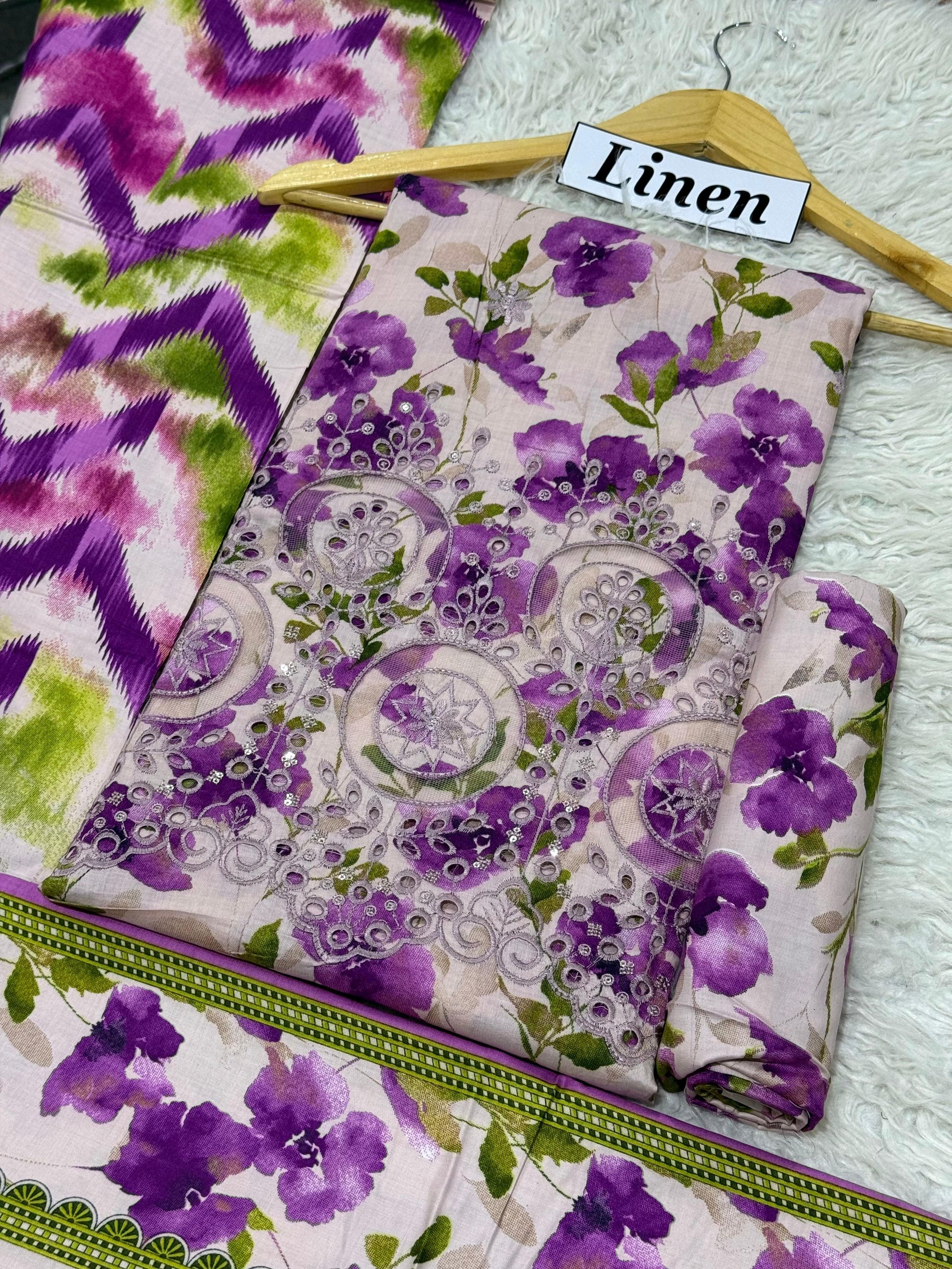 LINEN Printed Shirt with CHIKANKARI/LASERKARI Embroidered Daman