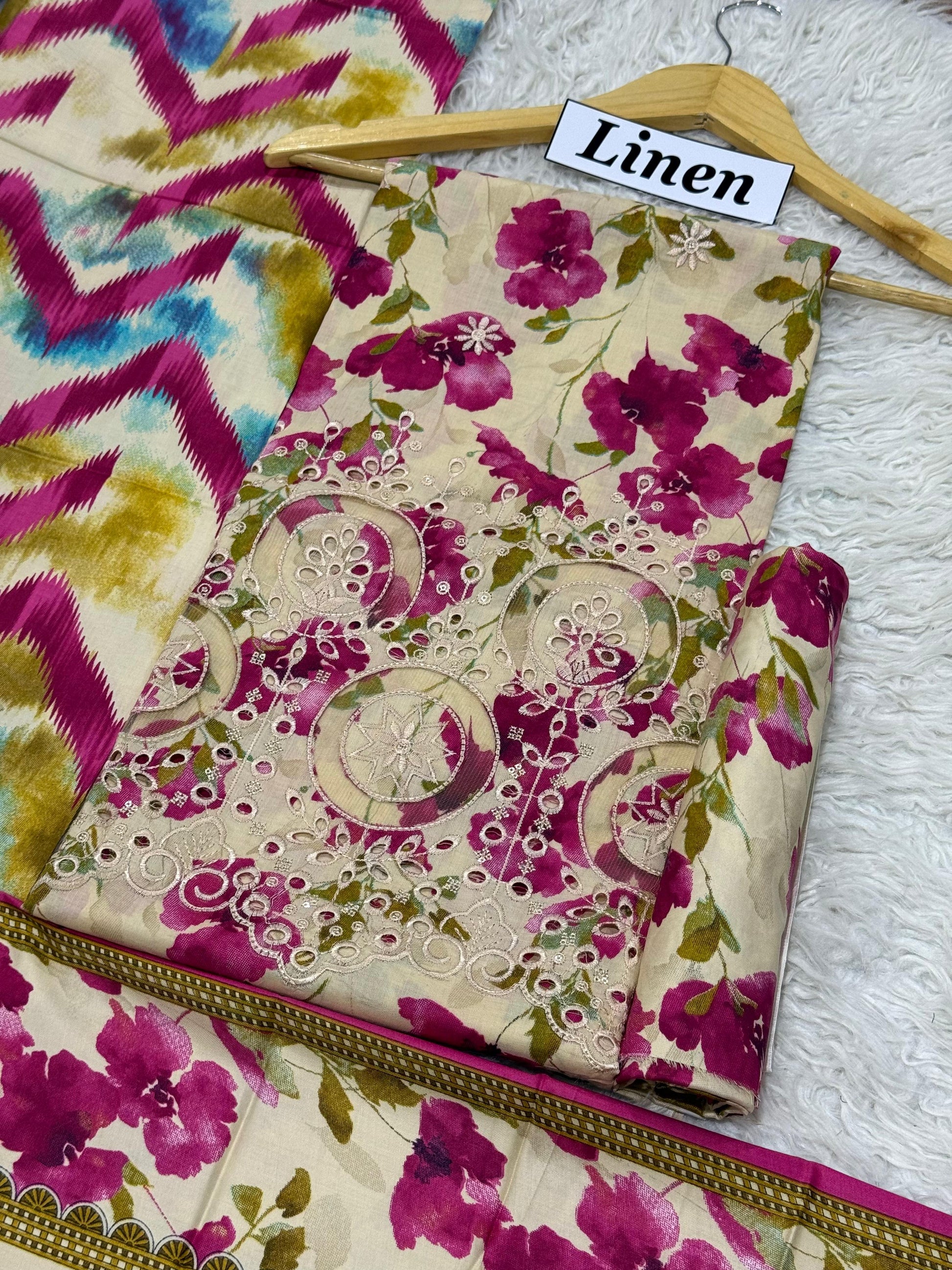 LINEN Printed Shirt with CHIKANKARI/LASERKARI Embroidered Daman