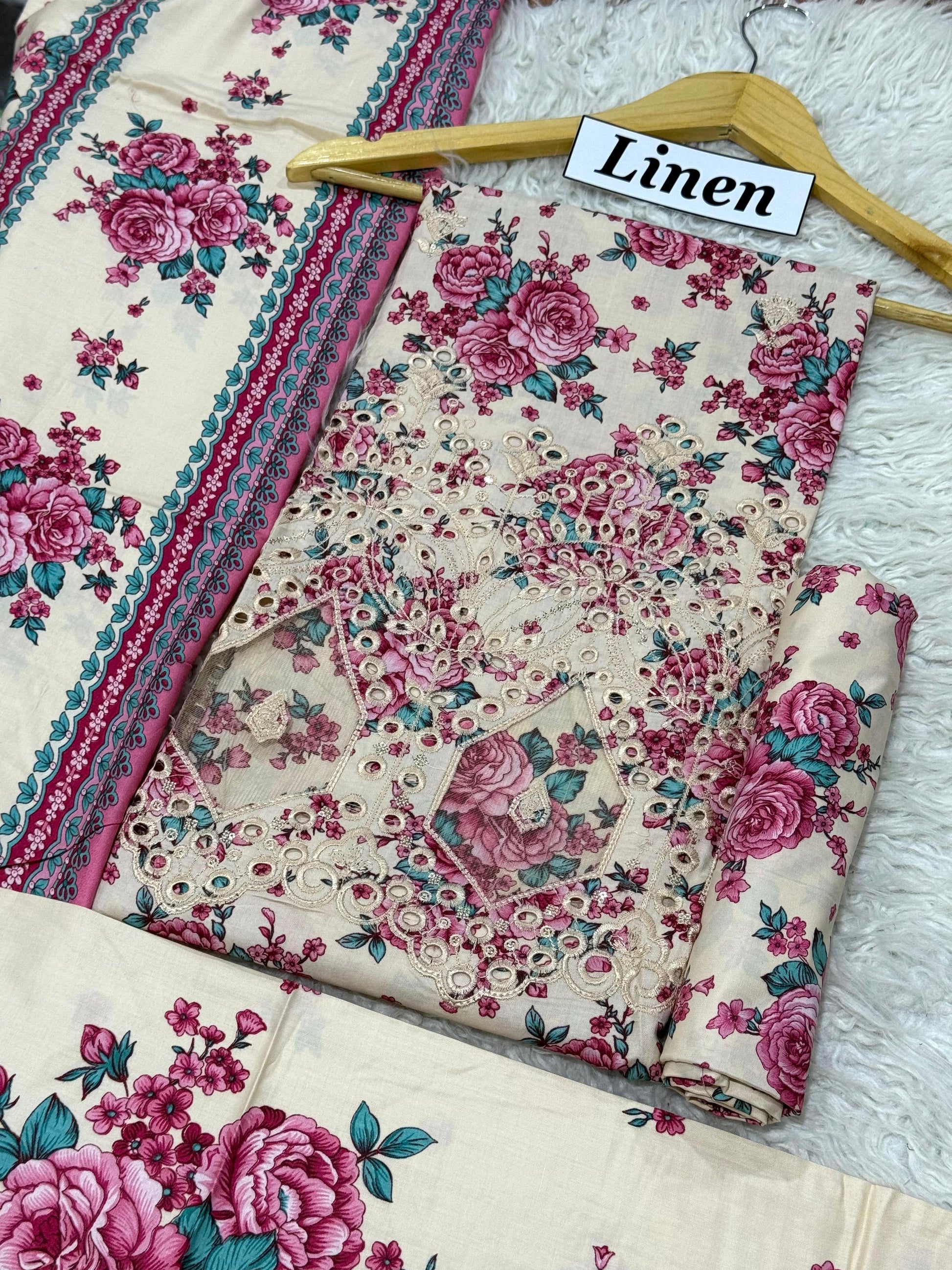 LINEN Printed Shirt with CHIKANKARI/LASERKARI Embroidered Daman