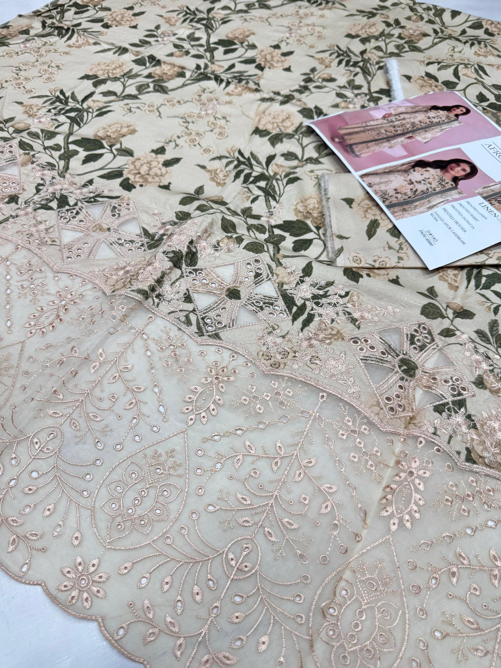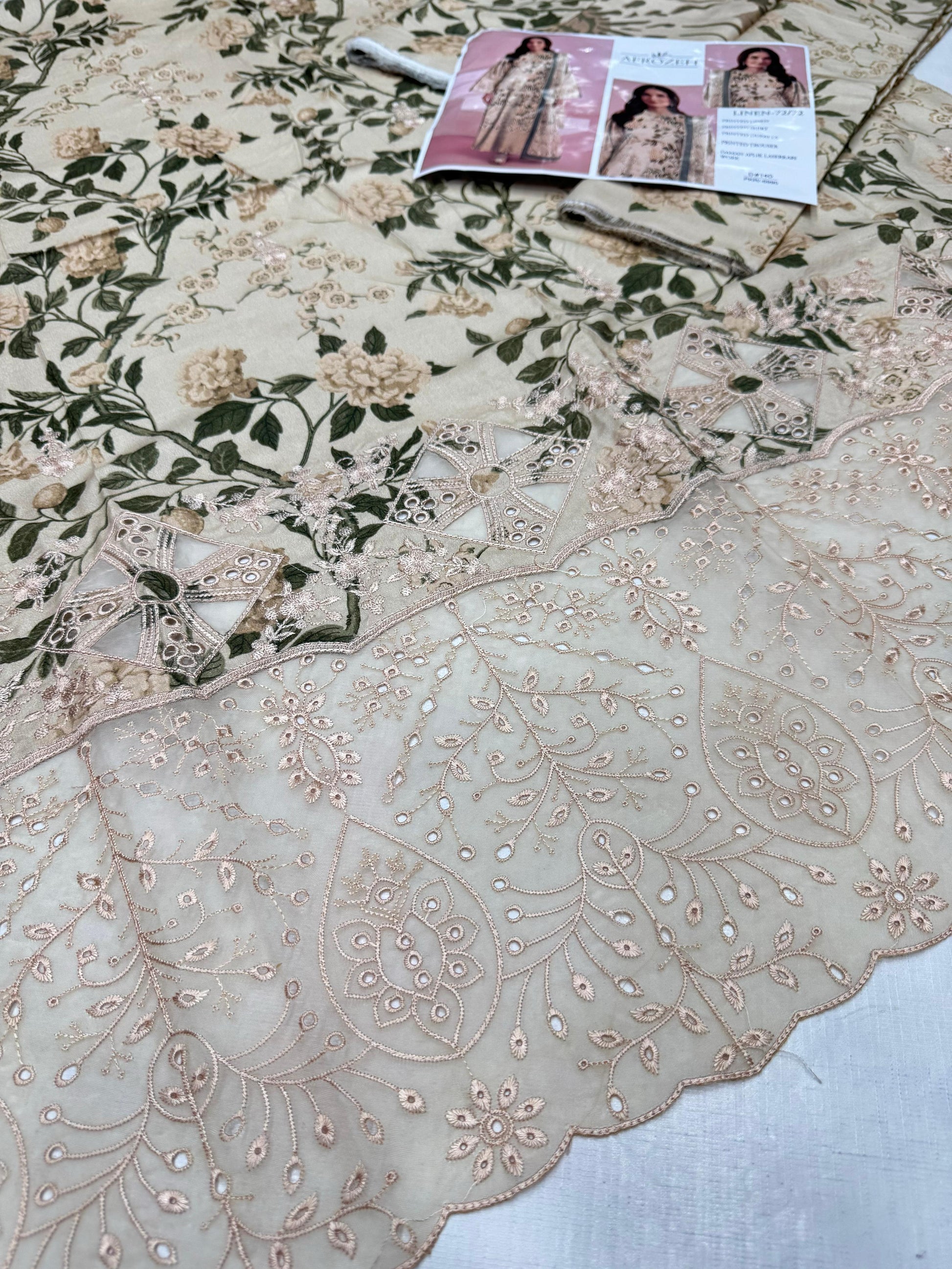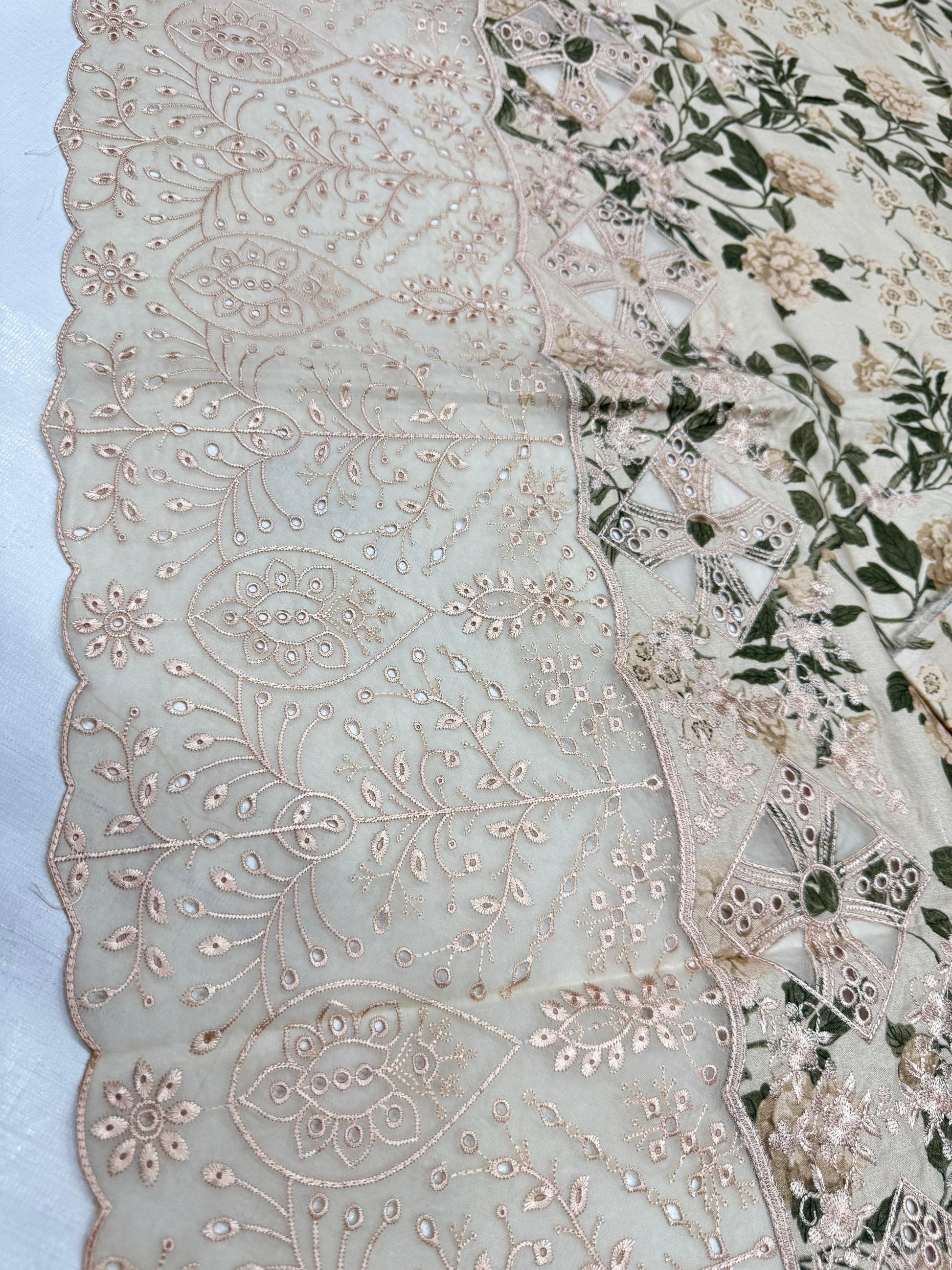 Daman Laser Kari Embroidered With Aplik Cutwork