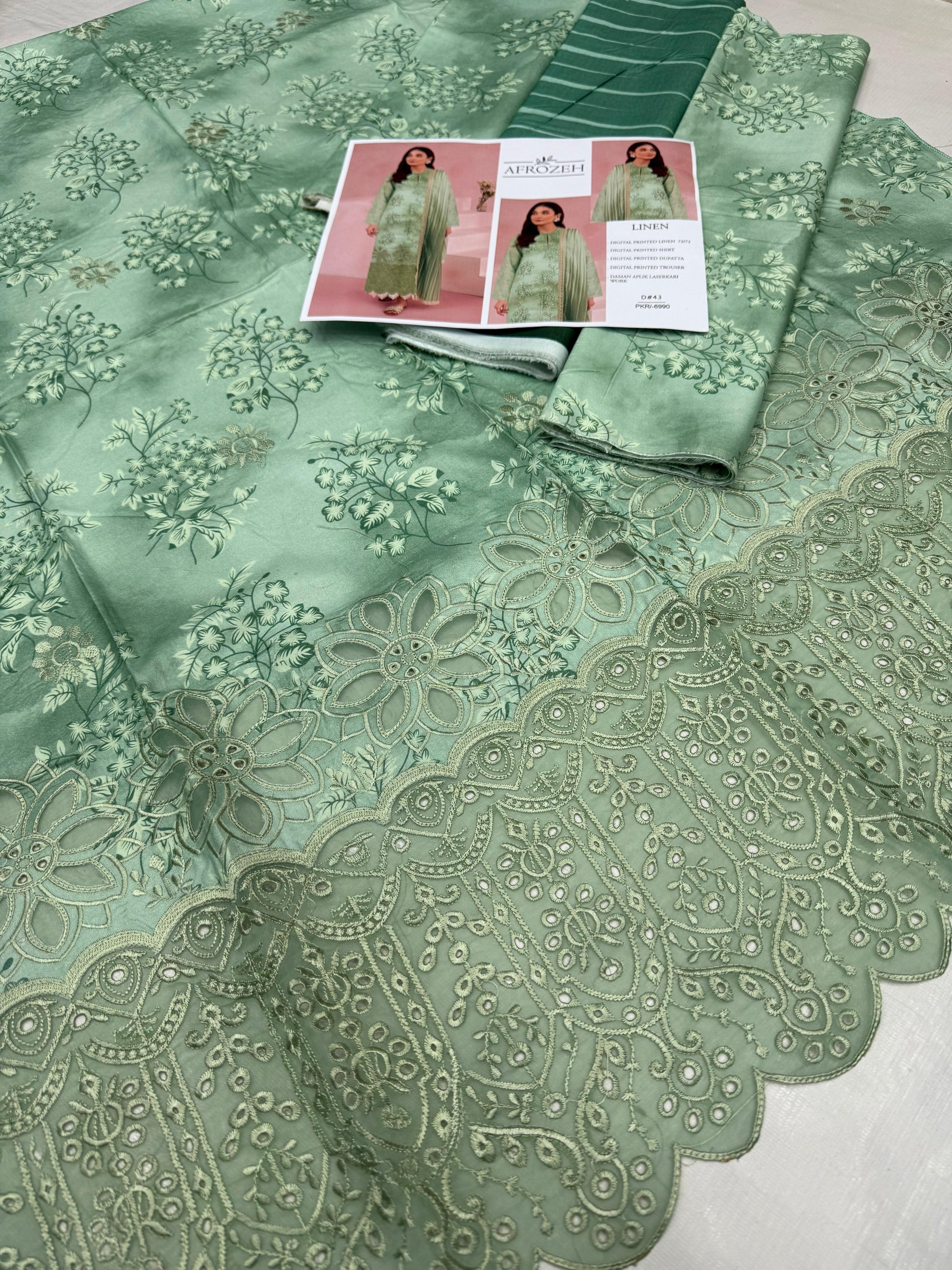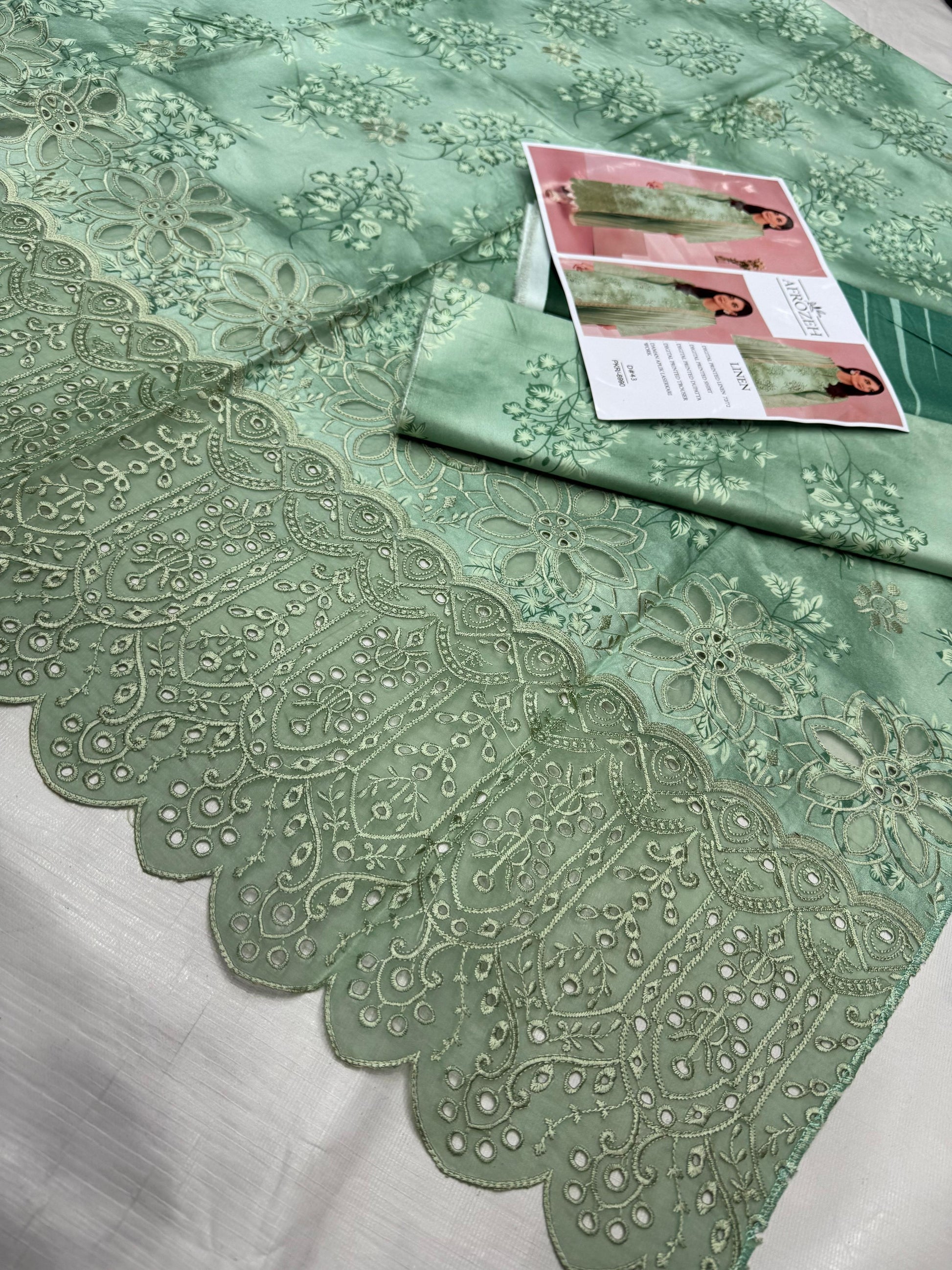 Daman Laser Kari Embroidered With Aplik Cutwork