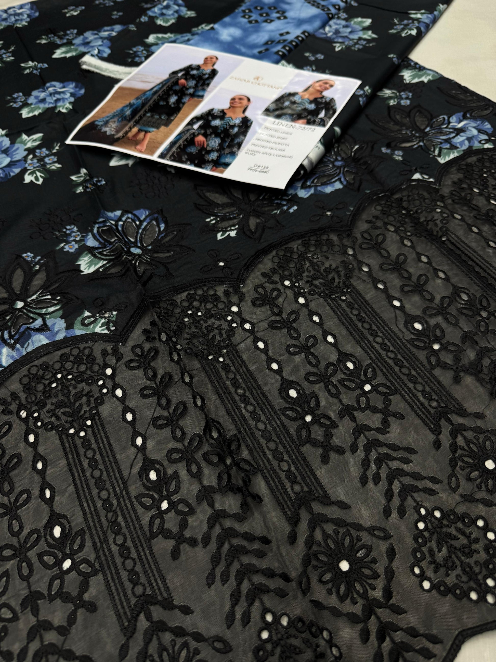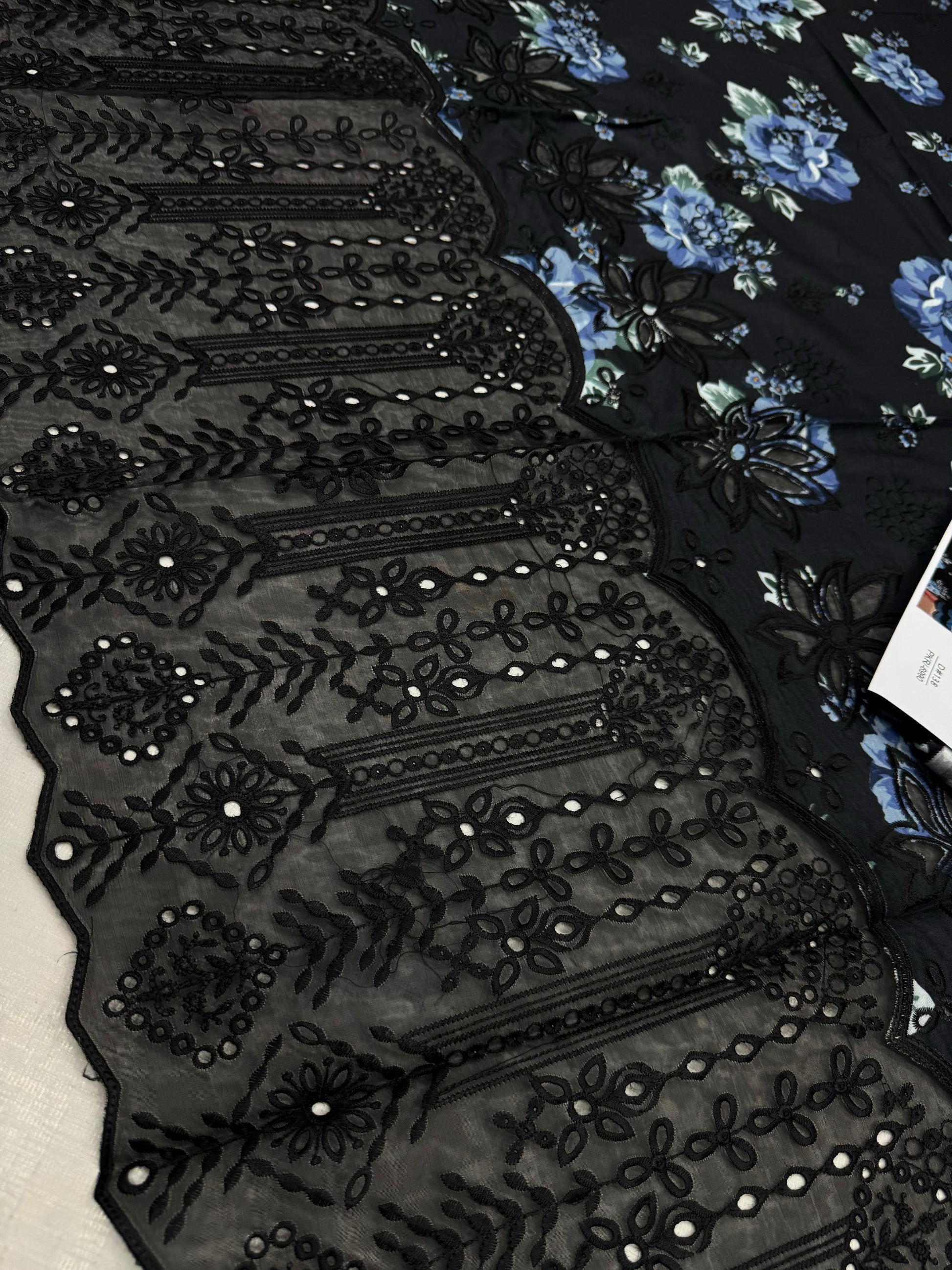 Daman Laser Kari Embroidered With Aplik Cutwork