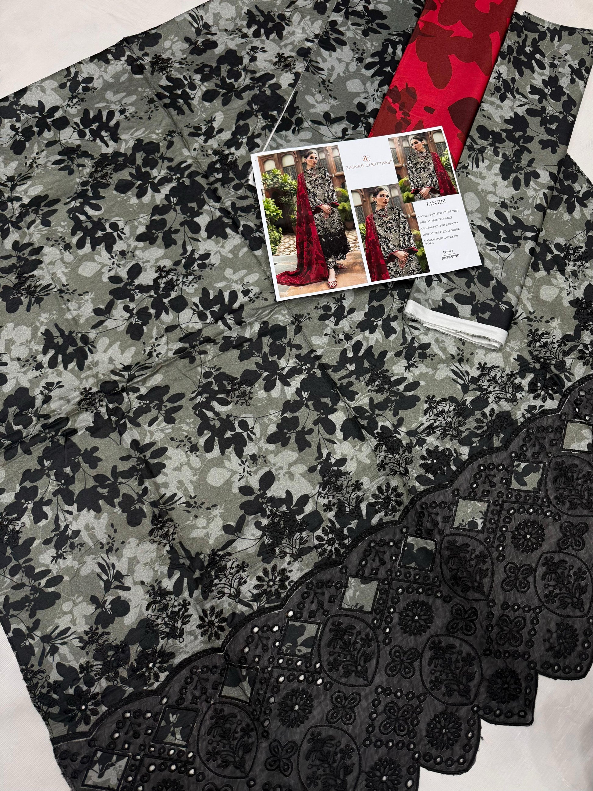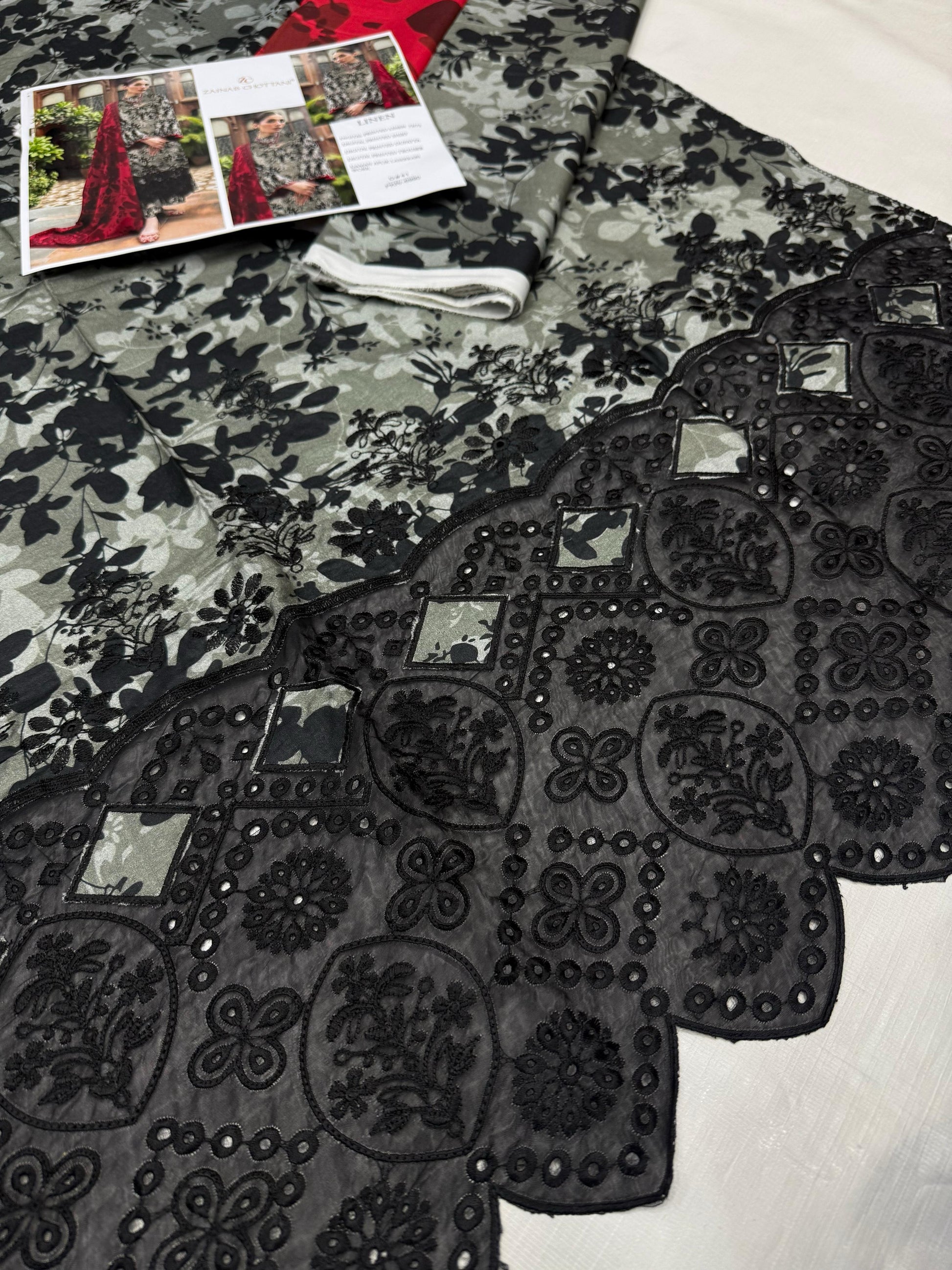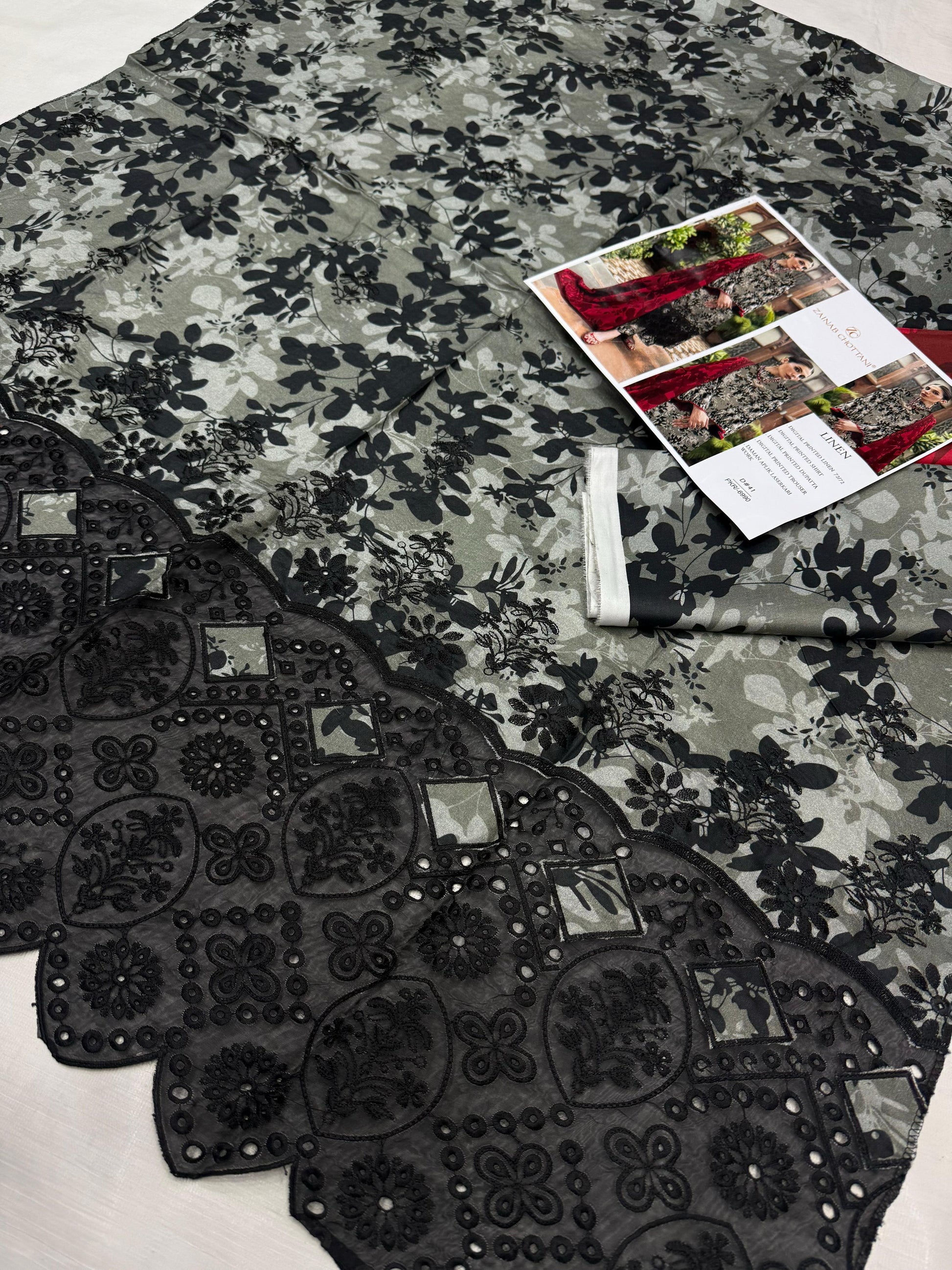 Daman Laser Kari Embroidered With Aplik Cutwork